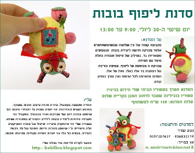 שמחה להודיע סוף סוף על סדנת בובות ראשונה שתתקיים בדירתי החדשה בקריית שלום בת"א ביום שישי, 30 ביולי